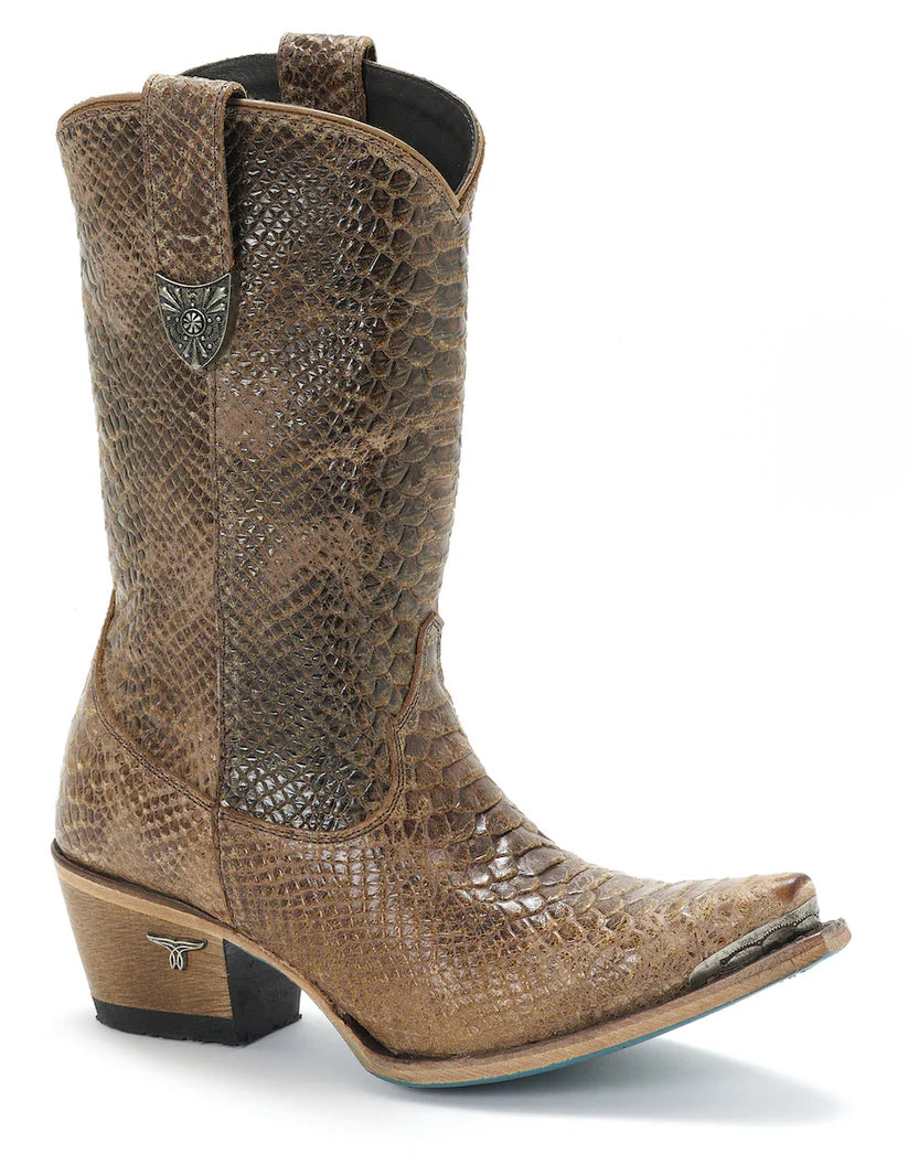 Step into a world where fashion meets fearless with the Lane Bad Habits Caiman Brown Belly Women's Boot. These boots aren't just footwear; they're a statement, an embodiment of your unique personality and a testament to your impeccable taste in fashion. Crafted from genuine caiman brown belly leather, these boots exude a sense of exotic elegance that's hard to ignore. The texture and richness of the leather make a bold statement wherever you go.