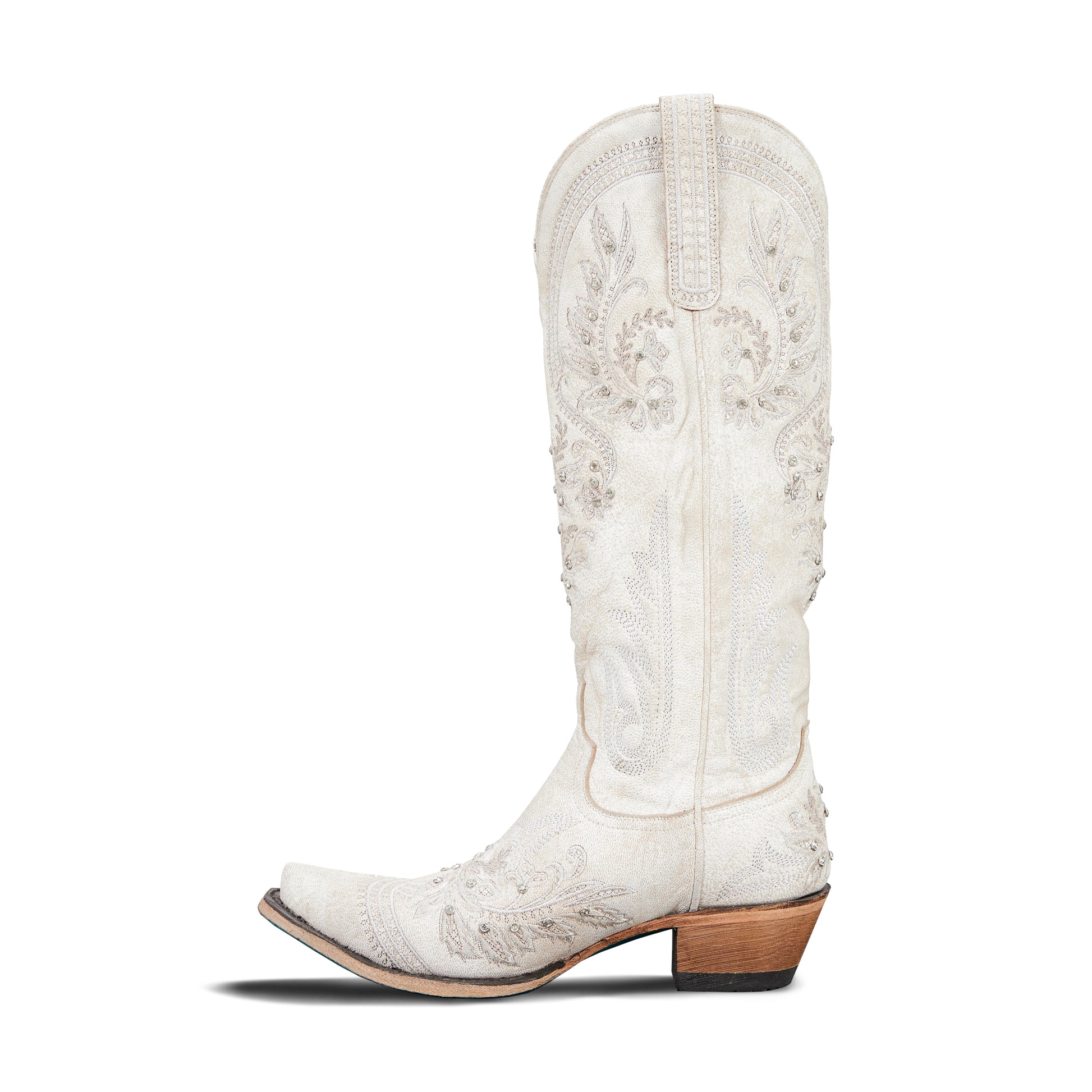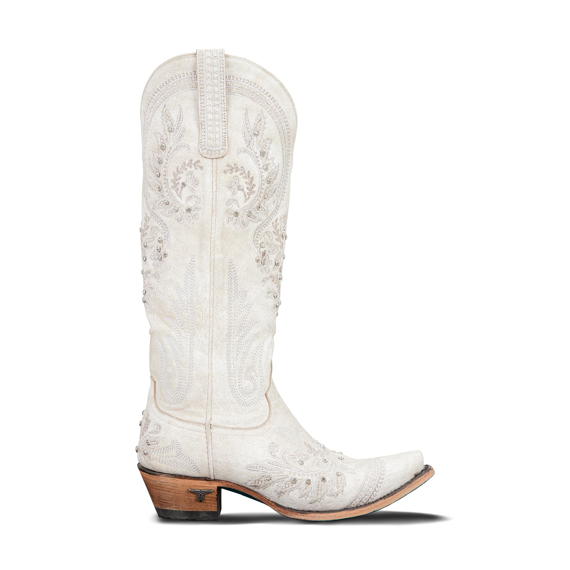 Featuring rim set crystal accents and tonal embroidery the Santorini is an upscale, elegant boot and makes an excellent wedding boot.