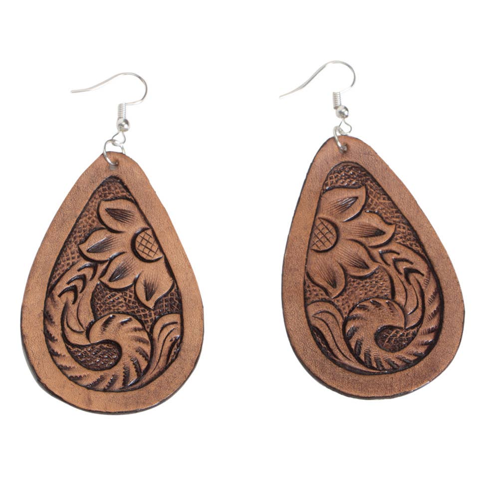 TE01. Tooled Pear Drop Earrings - Leather Jewellery Surgical Steel - TE01 (Min 3pcs).